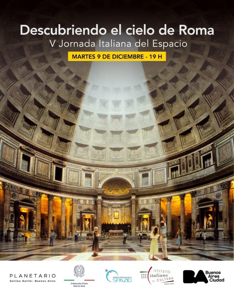 Para celebrar la V Jornada Italiana del Espacio, la Embajada de Italia en Buenos Aires y el Istituto Italiano de Cultura de Buenos Aires, en colaboración con el Planetario Galileo Galilei, invitan al público a participar del encuentro “Descubriendo el cielo de Roma”, que se realizará el martes 9 de diciembre de 2025 a las 19.00, en el Domo del Planetario Galileo Galilei.