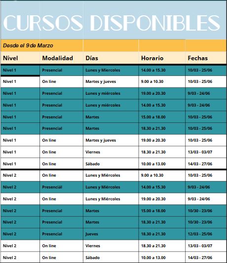 A partir del 9 de marzo comenzarán los nuevos cursos intensivos bimestrales, en modalidad presencial y online.