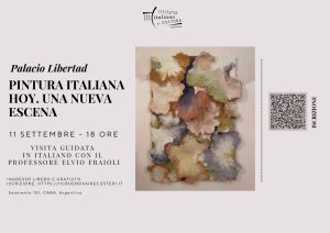 L’Istituto Italiano di Cultura di Buenos Aires invita a partecipare a una visita guidata speciale alla mostra Pittura italiana oggi. Una nuova scena, presso il Palacio Libertad, giovedì 11 settembre alle ore 18.00. L’attività sarà condotta dal professor Elvio Fraioli, figura di riferimento nella diffusione della cultura italiana, con un’ampia esperienza nell’insegnamento e nella ricerca […]
